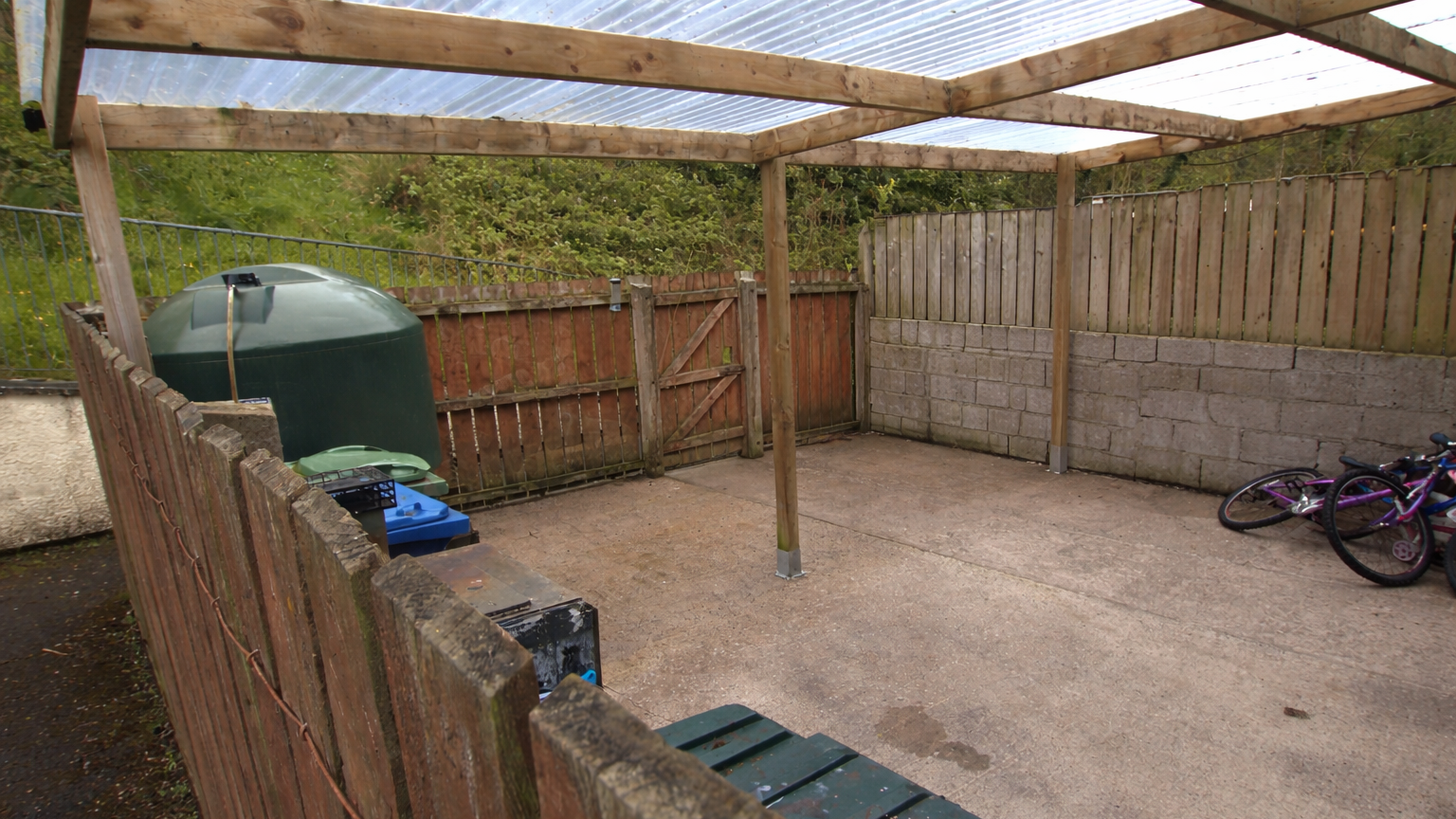 Externally to the front of the property there is a space for private parking, with secure timber fencing to boundary.